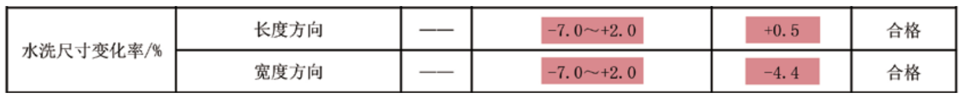 奈特綿®水洗尺寸變化率檢測結(jié)果
