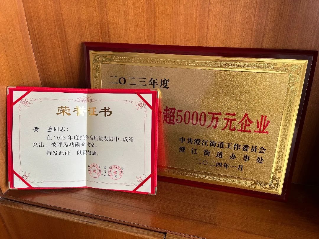 紅柳集團(tuán)在2023年度,榮獲了“入庫(kù)稅金超5000萬(wàn)元企業(yè)”“產(chǎn)品轉(zhuǎn)型升級(jí)先進(jìn)企業(yè)”“外貿(mào)進(jìn)出口工作先進(jìn)單位”等多個(gè)獎(jiǎng)項(xiàng)??偨?jīng)理黃磊先生,獲得了“功勛企業(yè)家”的榮譽(yù)。