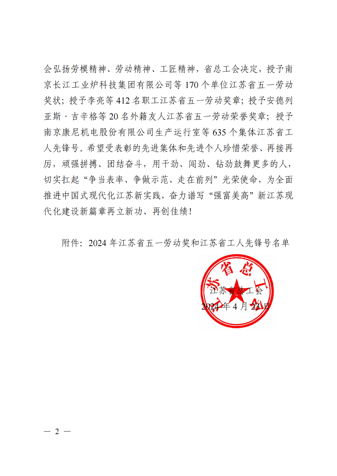 4月29日下午,江陰市慶?!拔逡弧眹H勞動(dòng)節(jié)大會(huì)在長三角(江陰)數(shù)字創(chuàng)新港隆重舉行,江蘇紅柳床單有限公司被江蘇省總工會(huì)授予2024年“江蘇省五一勞動(dòng)獎(jiǎng)狀”(江陰市共有3家企業(yè)獲此殊榮)。
