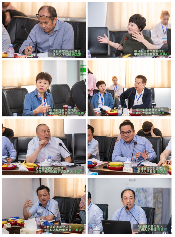 出席本次鑒定會(huì)的評(píng)審領(lǐng)導(dǎo)和專家有:中國(guó)紡織工業(yè)聯(lián)合會(huì)科技發(fā)展部主任張傳雄、中國(guó)紡織工業(yè)聯(lián)合會(huì)科技發(fā)展部高級(jí)工程師王志新、江南大學(xué)教授高衛(wèi)東、中國(guó)家紡協(xié)會(huì)會(huì)長(zhǎng)、高級(jí)工程師朱曉紅、中國(guó)棉紡協(xié)會(huì)教授級(jí)高工朱北娜、青島大學(xué)教授韓光亭、東華大學(xué)教授薛文良、江蘇工程職業(yè)技術(shù)學(xué)院教授陳志華、江蘇悅達(dá)紡織集團(tuán)有限公司教授級(jí)高工戴俊。